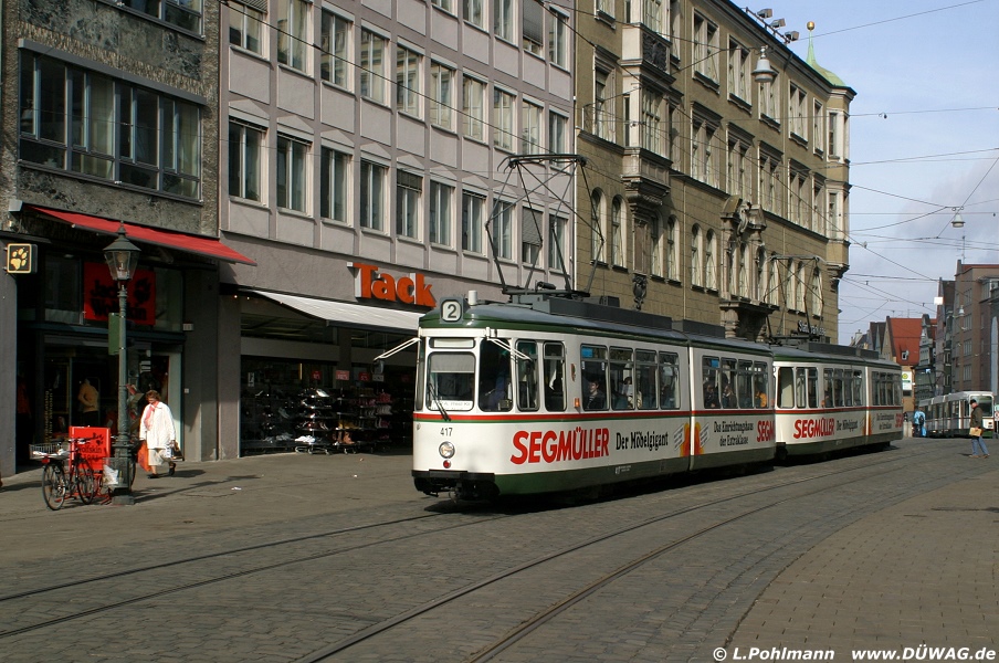 Ein GT4-Gespann, vorne Tw 417, auf der Maximilianstraße (22.02.08)