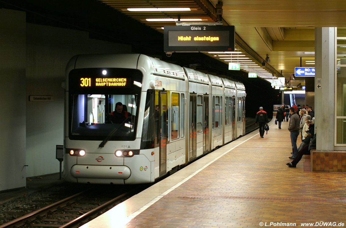 Tw 521 (Stadler Variobahn) in der Tunnelstation unter dem Gelsenkirchener Hauptbahnhof (30.01.13)
