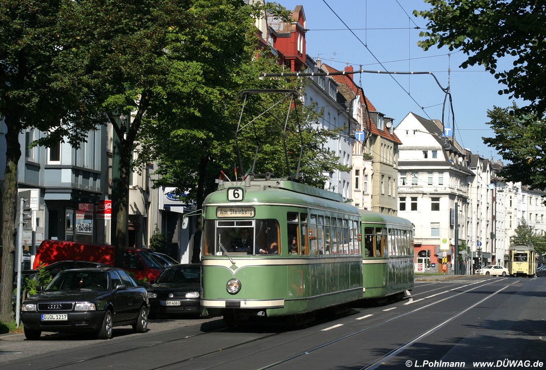 Der historische Tw 2014 + Bw 1629 in der Himmelgeisterstraße (14.09.08)