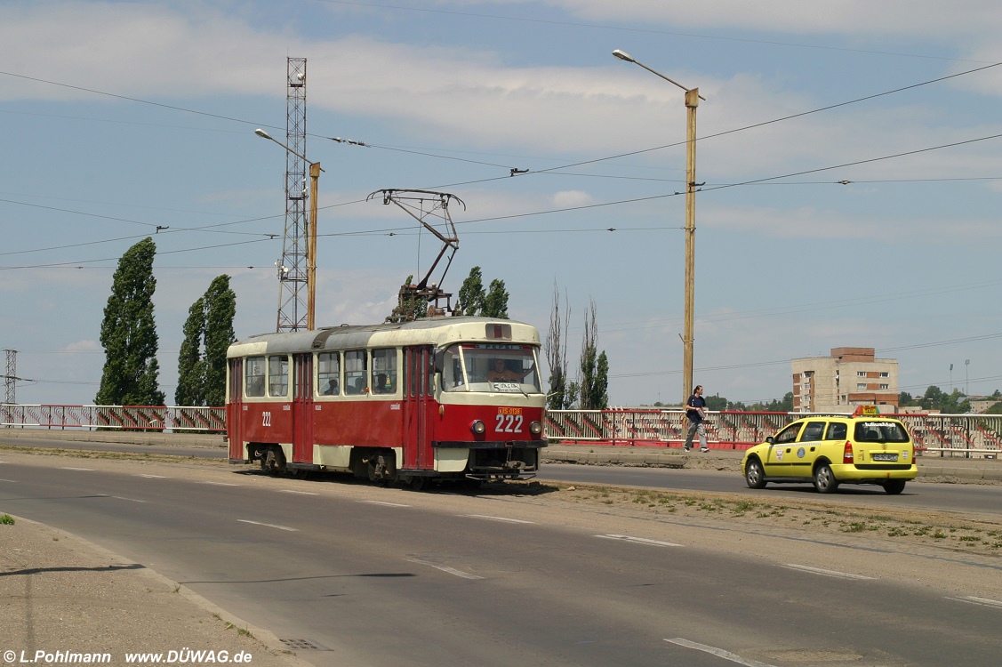 Tw 222 auf der Bahnhofsbrücke. Der Wagen ist ein Tatra T4R, welche die Original-Ausführung für Rumänien ist.