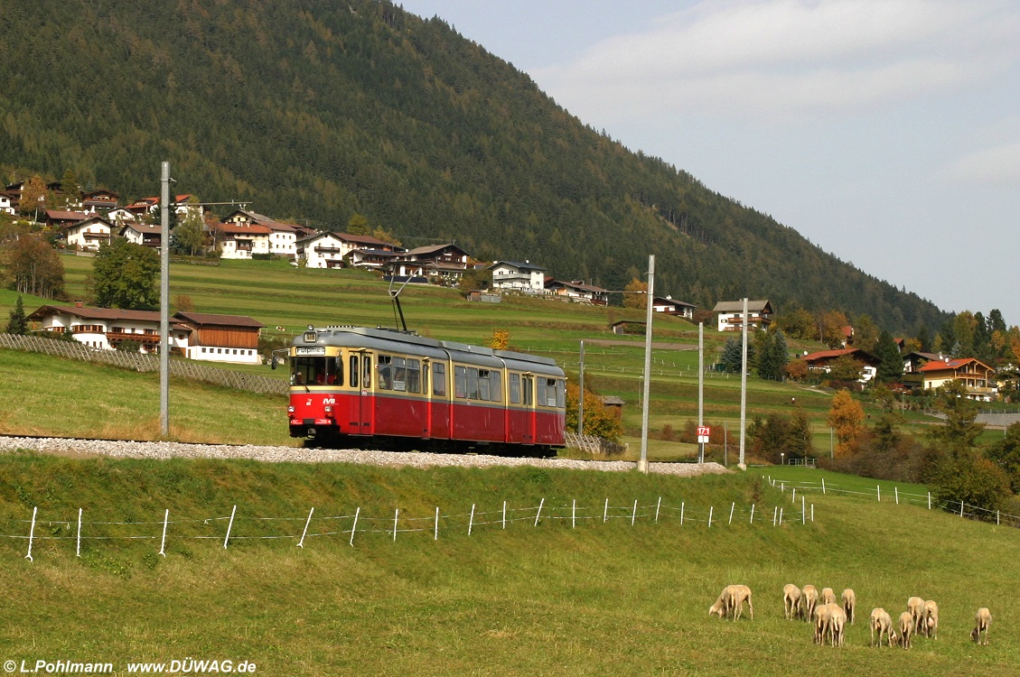 Tw 86 (ex Hagen 6x-Tw 66) auf der Stubaitalbahn in Fulpmes (13.10.08)