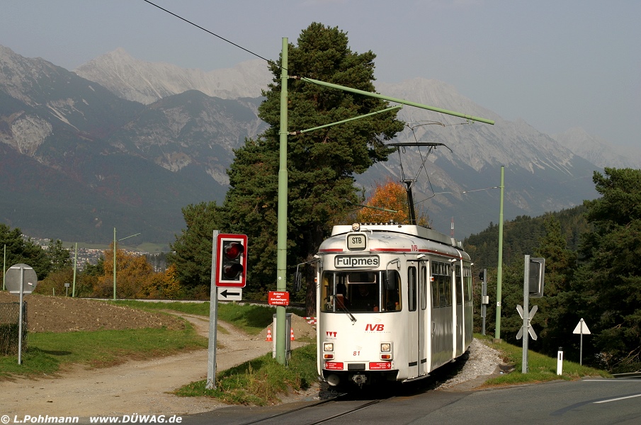 Tw 81 (ex Hagen 6x-Tw 69) auf der Stubaitalbahn in Mutters (13.10.08)