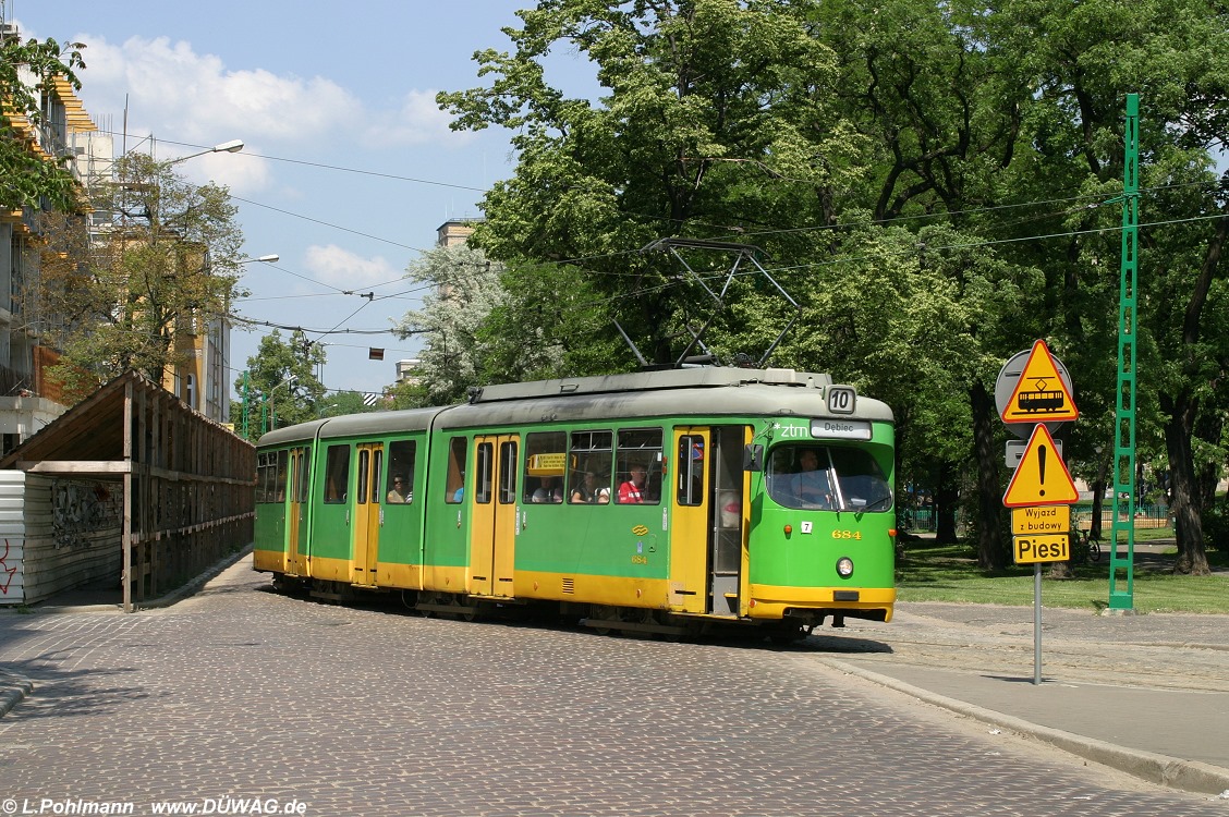 Tw 684 (DÜWAG GT8, ex Düsseldorf Tw 2864) auf der ul. Towarowa (22.05.12)